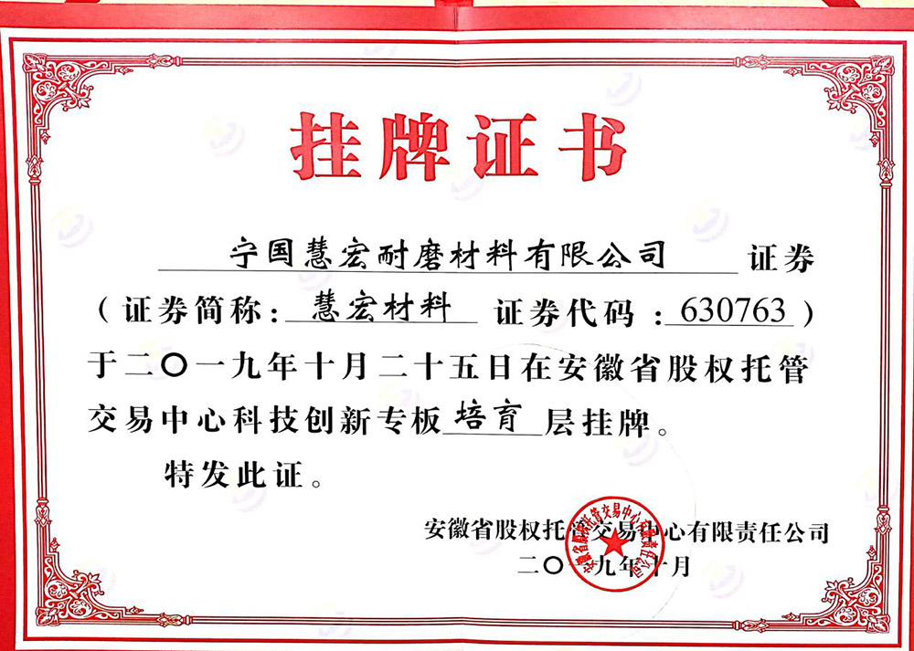 可靠的設(shè)備,才能長久穩(wěn)定運行全面推行ISO9001;2000版質(zhì)量管理體系標準,秉承“科學管理、精心制造、優(yōu)質(zhì)服務(wù)、追求卓越”的質(zhì)量方針,不斷打造高端耐磨材料產(chǎn)品。